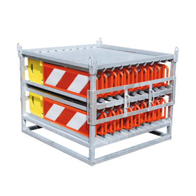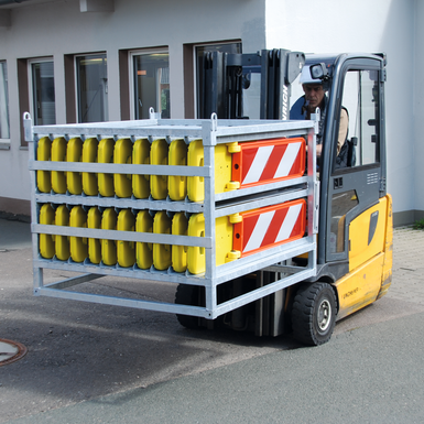 Praktyczna paleta transportowa i magazynowa jeszcze bardziej ułatwia obsługę i logistykę składanych słupków sygnalizacyjnych lub stojaków Vario. Dzięki bocznemu otwarciu paleta może pozostać na powierzchni ładunkowej ciężarówki i może być wygodnie ładowana i rozładowywana przez jedną osobę, gdy burta jest otwarta.